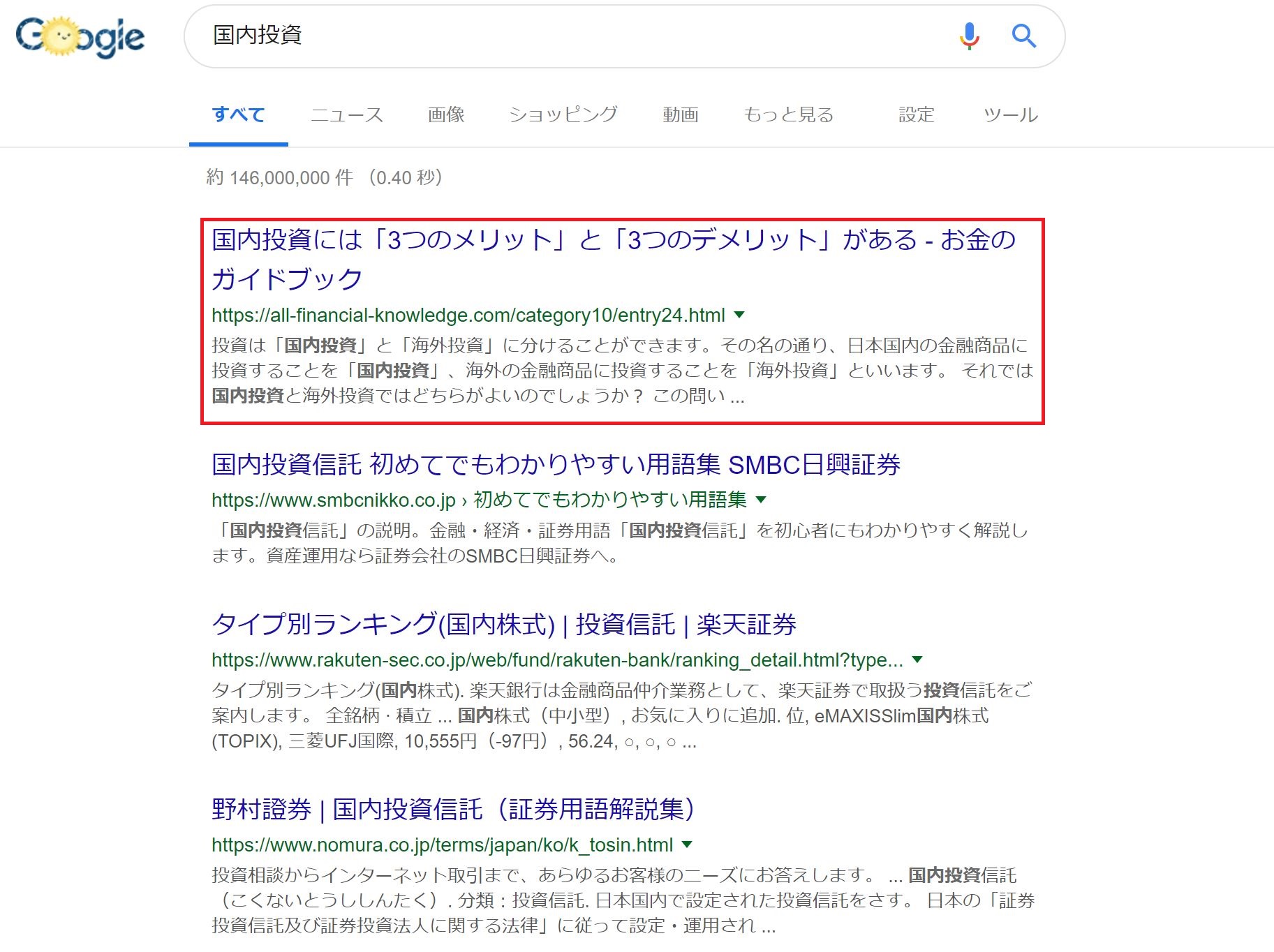 この記事が検索エンジンで最上位に表示されました。「国内投資」で検索。
